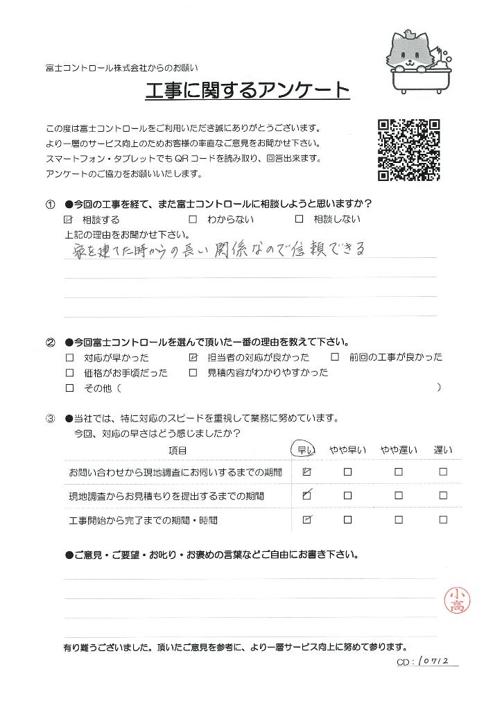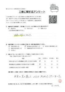 見積も施工も手際よく助かりました。また、何か不具合が生じた時は、よろしくお願い致します。